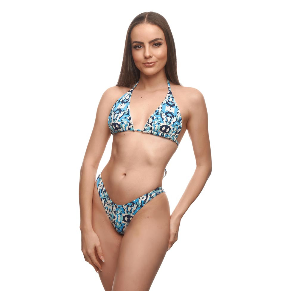 Top geometrico azul con blanco